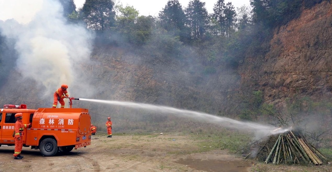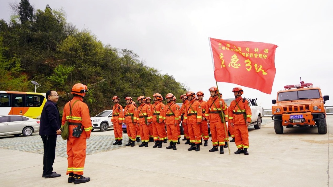 本次演练模拟芷江明山省级森林公园一处发生火灾,接到火情报警后,三道坑省级自然保护区管理所全体干部职工迅速集合,指挥长分工安排后,各小组各司其职,携带消防水枪、扑火把、油锯等扑火器具立即赶赴火情现场。