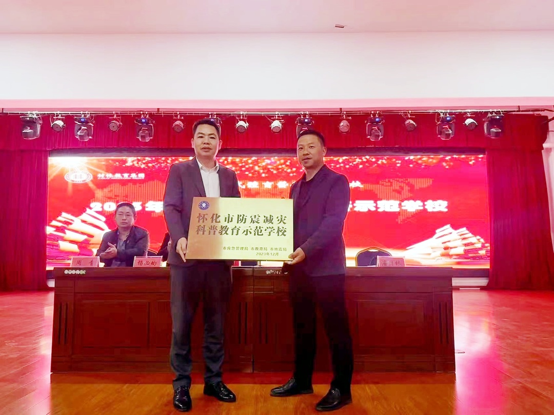 芷江融媒讯(记者 吴鹏)4月13日,怀化市地震局相关负责人现场为怀化精武职业学校授牌,祝贺该校获评“怀化市防震减灾科普示范学校”。