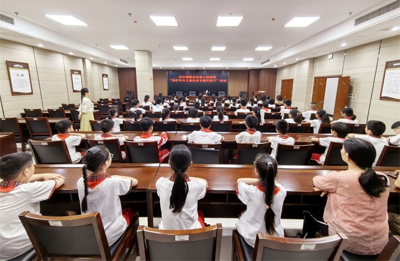 芷江融媒讯(通讯员 刘健)为进一步加强对妇女儿童合法权益的司法保障,全力推进涉婚姻、家庭民事纠纷诉源治理工作,4月16日,芷江人民法院开展“保护妇女儿童权益专题开放日”活动,三里坪小学50余名师生及10余名家长代表走进法院,“零距离”感受阳光司法。