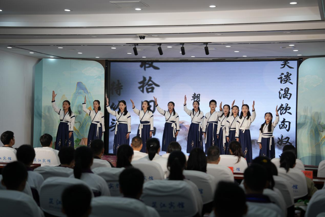 活动在诗朗诵节目《华夏丹心》中拉开帷幕,数十名学生在舞台上激情表演,时而高亢激昂,时而低吟浅唱,淋漓尽致地展现了中华诗词之美、人文之美,不时引来现场观众雷鸣般的掌声。以汉赋表现形式创作的《芷江吟》,概括了芷江的前世今生,展现了芷江厚重的历史文化底蕴,在老师和学生声情并茂的表演中,气势磅礴,荡气回肠。