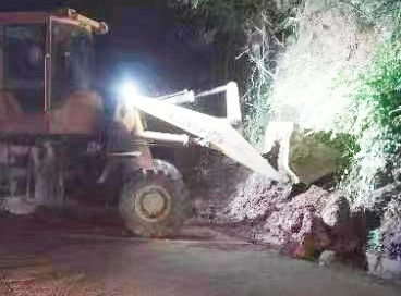 得知情况后,值班人员立即启动突发事件应急处置预案,第一时间前往塌方路段处置,在塌方路段两端摆放警示标志标牌,工作人员协调引导做好道路保通工作,指挥过往车辆减速慢行。此次处理突发事件共出动铲车1台,运输车1辆,养护人员3名,紧急处置塌方,快速抢通半幅通车。至21时路面塌方全部清除,恢复正常通行。