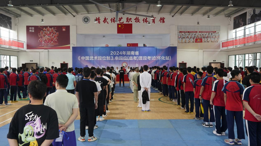 芷江融媒讯(记者 杨丽君)5月23日,湖南省《中国武术段位制》中段位晋段考试(怀化站)在芷江精武体育艺术职业学校开幕。来自鹤城、洪江、芷江、新晃等地14支代表队,230名运动员齐聚芷江,以武会友、同台竞技。