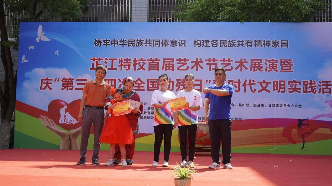展演在《小军鼓》中拉开帷幕,随后,《小小花朵》《旗鼓飞扬》《猪八戒娶媳妇》《顶呱呱》《小燕子》等一个个精彩节目依次上演,在展演比拼环节里,同学们以丰富多样的表演形式尽情展示艺术才华,用自信和阳光的心态比拼角逐,充分展现了特殊青少年热爱祖国、热爱生活、积极进取、乐观向上的生活态度和自尊、自信、自强、自立的精神风貌。经过激烈地角逐,最终决出一等奖2名,二等奖2名,三等奖4名。