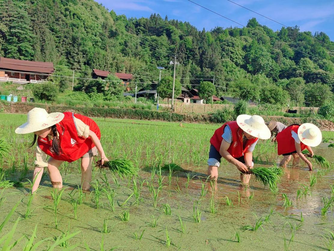以干为本求实效。五月插秧忙,沃野换新装。在村支两委带领下,青年干部挽起裤脚、走进农田,与当地村民一起插秧育苗,助力农耕。“插秧时要一直弯着腰,秧苗要插稳、插齐,不要留空”,在村内老党员的悉心讲解示范下,几位志愿者纷纷上手,愈发熟稔,播下的秧苗横成排、竖成线,为片片农田披上嫩绿新装。据悉,通溪村在芷江农业部门、公坪镇党委政府指导下,认真落实“藏粮于地、藏粮于技”战略,积极推动良田、良种、良法深度融合,青年干部在学中干,于干中学,通过亲身实践,直接投身乡村振兴第一线。