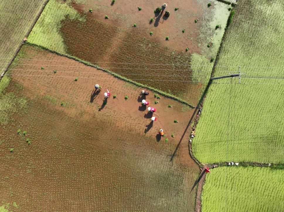 (图丨青年干部纷纷上手插秧。徐孟璐摄。)