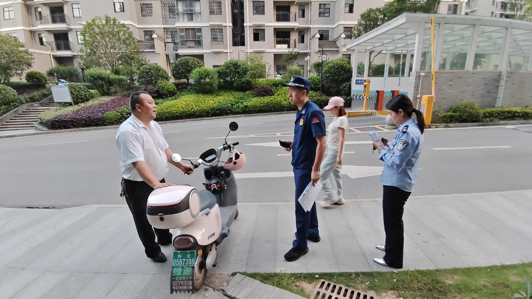 检查中,大队监督员向物业工作人员和小区居民讲解电动自行车违规停放、充电的潜在危害,督促小区物业管理单位严格按照消防安全要求,积极整改在检查中发现的隐患问题,及时劝阻、制止居民在疏散通道、安全出口、楼梯间等公共区域和消防车通道停放电动自行车,私拉乱接电源及飞线为电动自行车充电等行为,提醒居民做好居家防火,及时发现和消除身边存在的火灾隐患。