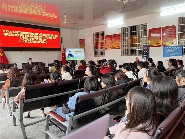 活动中,法官以面对面法治课的方式,围绕家庭教育“一法一条例”的出台背景、家长责任、社会支持体系及法律后果等方面,向村妇女主任、家长代表和同学们解读了有关法律条文,并引用多起真实案例详细分析了当前未成年人违法犯罪的主因和家庭、学校在未成年人成长过程中各自需承担的责任。课堂上,法官围绕家长在亲子沟通、心理健康、智能手机管理等方面遇到的育儿困惑,与家长们进行交流互动。