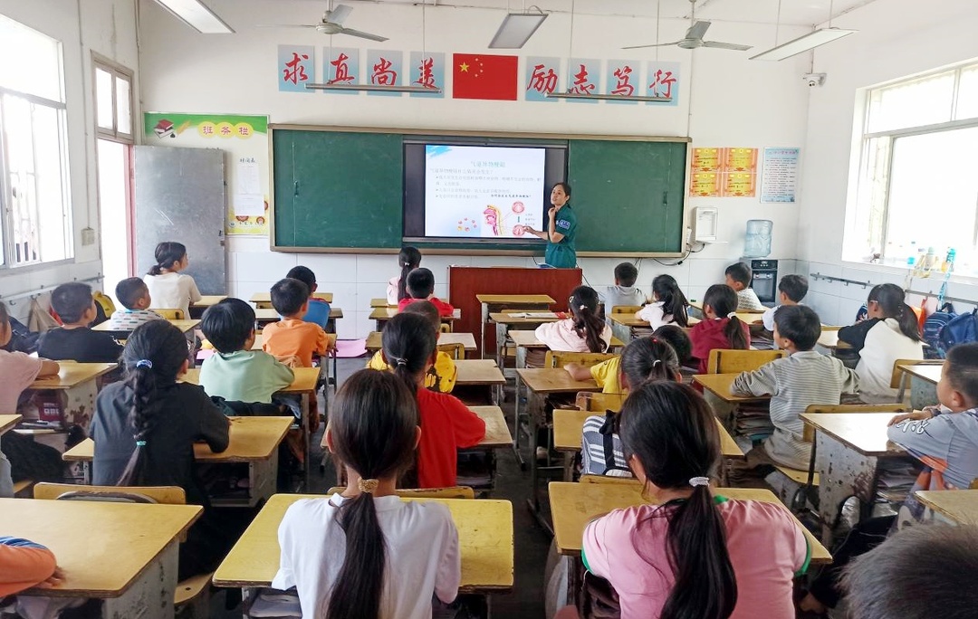 (5月23日,芷江中医院科技工作者杨丽在水宽乡小学开展急救知识讲座)