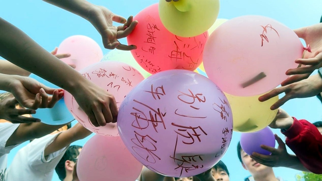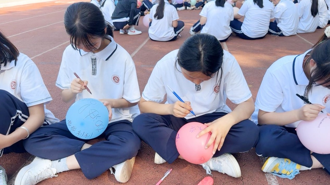 活动现场,伴随着轻柔的音乐,学生们在心理老师的指导语中开启了一场积极心理暗示之旅。随后开展了“超级能量圈”“鲤鱼跃龙门”“坐地起身”“奇妙口香糖”“放飞梦想”“我们都是追梦人”等减压活动。在各类精彩纷呈的活动中,同学们在互动中携手克服困难,放松身心,受益良多。活动最后,同学们纷纷将自己的梦想和对美好的期盼写在气球上,飘扬在学校上空。