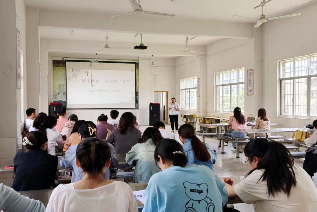 下午,来自河西小学的四位学科骨干分别针对语、数、英、科进行了“高效复习策略”专题讲座。大家从复习现状、抓准复习课内容、复习课的流程以及实施复习课策略等方面与老师们倾囊交流,并结合实际教学案例精准剖析,引领教师们要善用激励性的评价策略,充分挖掘学生复习的内驱力,真正落实“减负增效”。