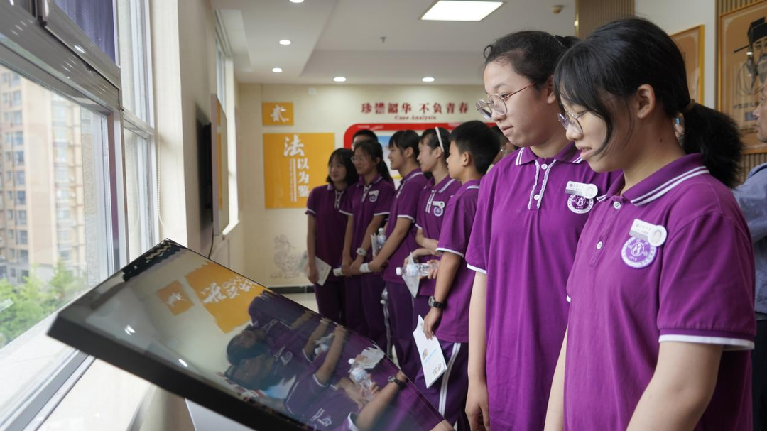 在法院干警的引导和解说下,同学们参观了青少年法治教育宣传基地,认真聆听预防校园欺凌、远离毒品犯罪、防范网络电信诈骗等法律知识介绍,仔细观看图文并茂的展板和典型案例,详细了解未成年人犯罪原因和类型,让同学们学会应对不法侵害、远离犯罪,增强自我保护能力,做一名知法、懂法、守法、用法的新时代好少年。