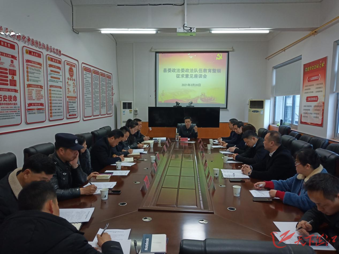 3月20日,县委政法委政法队伍教育整顿座谈会在县委政法委会议室举行。县委常委、政法委书记、县政法队伍教育整顿领导小组副组长、县政法队伍教育整顿领导小组办公室主任汪洪主持,县人大代表、政协委员、企业家、律师、人民陪审员、普通群众代表和县政法委教育整顿领导小组成员参加。