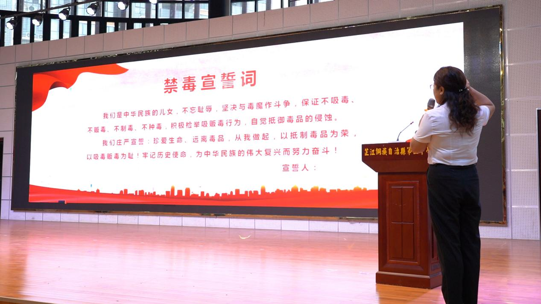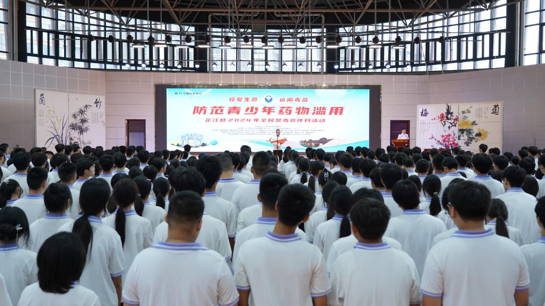 芷江融媒讯(通讯员 杨铠玮)为凝聚社会各界力量,共同筑牢禁毒防线,守护青少年的健康成长,6月25日上午,以“防范青少年药物滥用”为主题的全民禁毒宣传活动在芷江三中举行。
