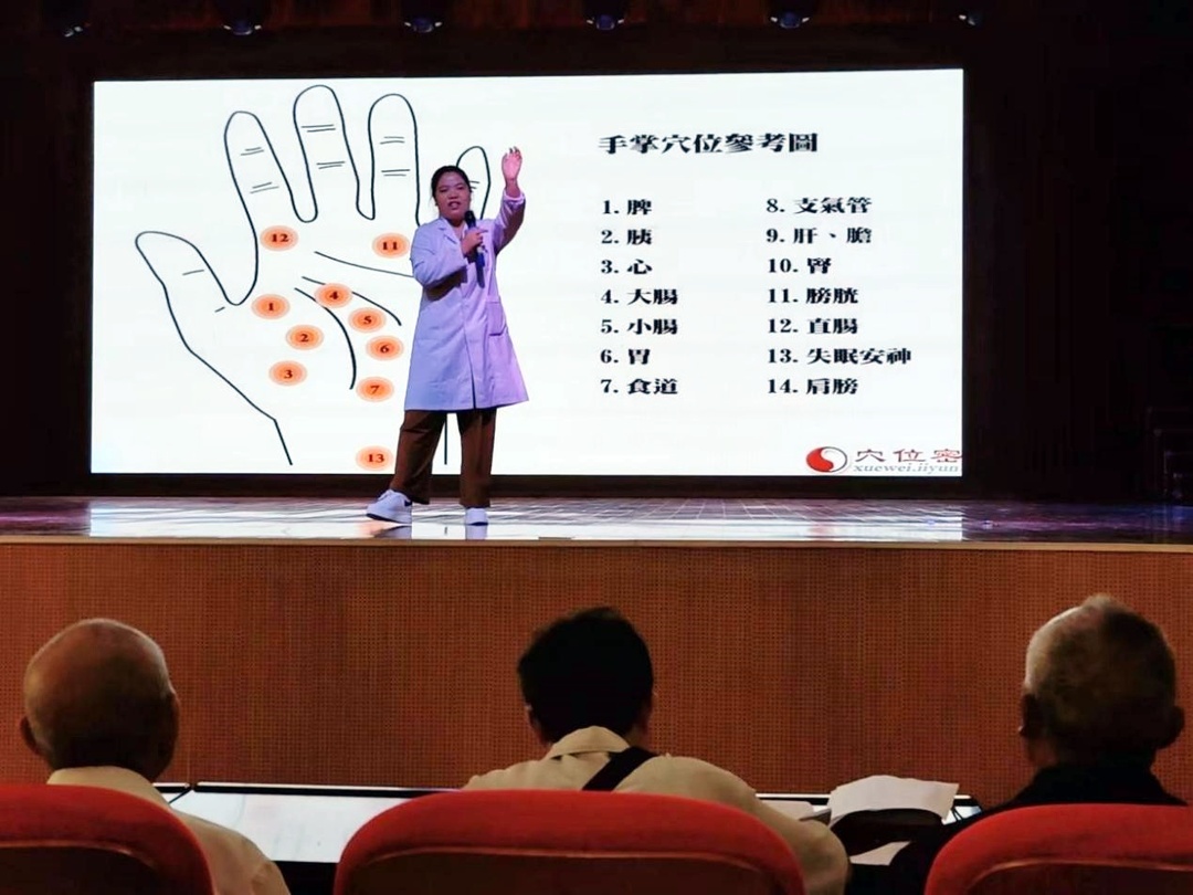 随后的健康讲座内容涵盖了穴位按摩、健康饮食、科学锻炼等多个方面。校医何凡淑结合实际案例,深入浅出地讲解了老年人常见的健康问题以及应对策略,让老党员们了解到健康的生活方式对于维护身体健康的重要性。