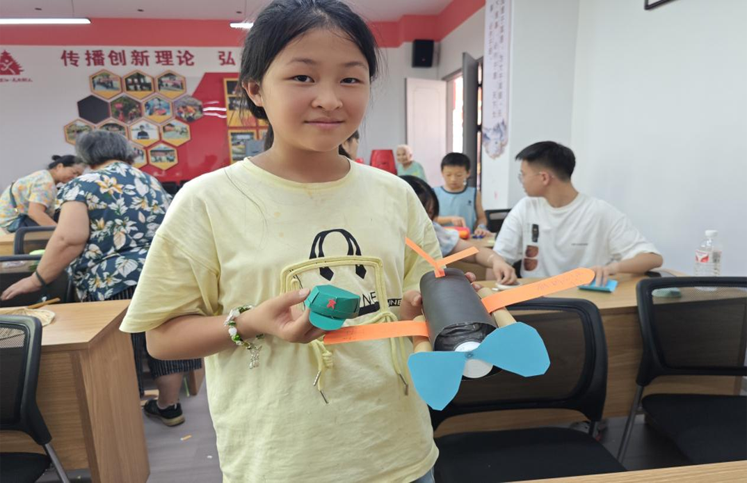 活动中,文明实践志愿者向社区居民、青少年介绍了“八一”建军节的由来和意义,共同观看了微电影《建军们》,并带领青少年一起制作“八一”建军节红军帽、飞机的DIY手工,以独特的方式向建军节献礼。