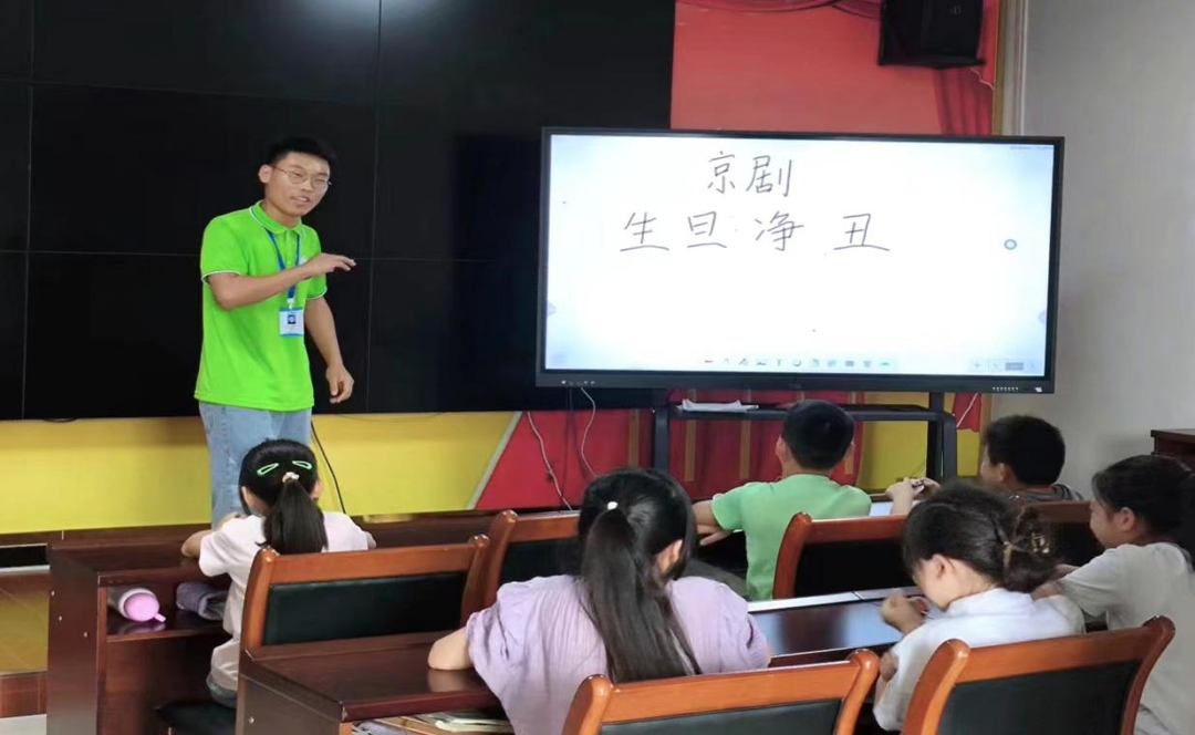 课堂上,支教老师通过讲解京剧中各式各样的角色、戏服、舞台故事搭配和精彩的唱腔表演,充分展现京剧文化的独特魅力,积极引导青少年感受京剧的韵味与魅力,增进对传统京剧文化的了解,增强对中华民族传统文化的自信心、认同感和自豪感。