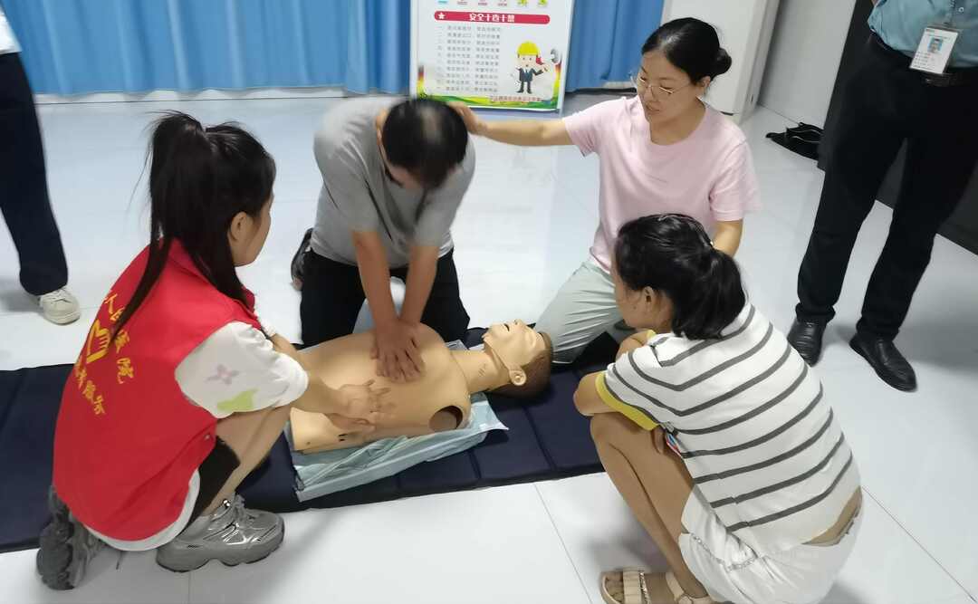 县人民医院工作人员结合身边的典型案例,围绕紧急呼救、心肺复苏突发事件处理等急救知识和基本救护原则进行了详细讲解。医务人员边演示边讲解急救步骤、手法要点等规范要求。员工们听得认真,看得仔细,将心肺复苏操作要领熟记于心,随后,员工在医务人员的指导下,根据培训中讲授的理论知识,判断是否丧失意识、有无自主呼吸、有无脉搏……利用急救模拟人开展心脏按压、清除异物、人工呼吸等心肺复苏模拟救护。各位员工积极参与互动,活动现场气氛热烈。