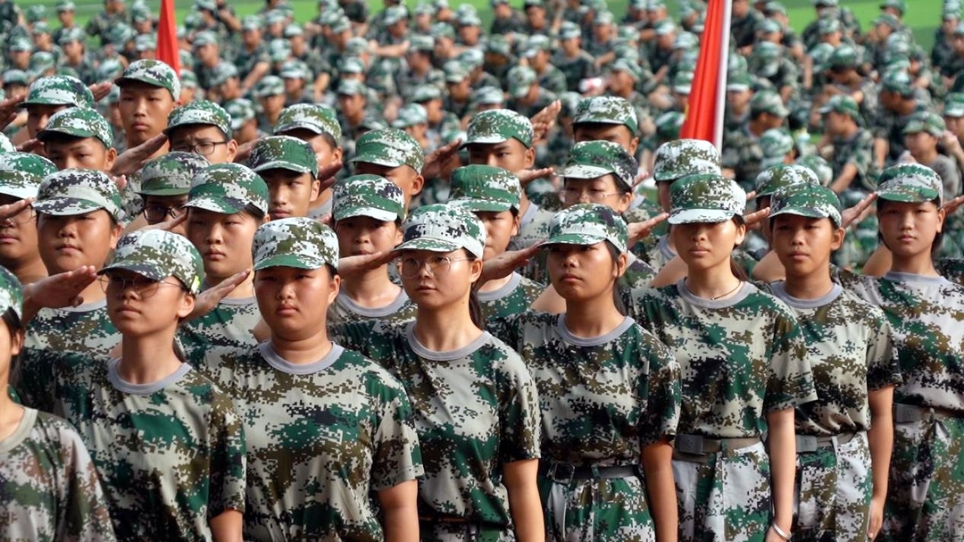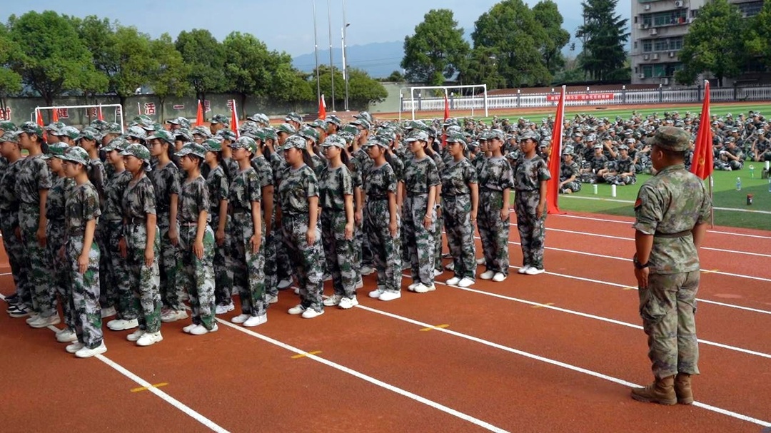上午八点,军训会操正式开始,高一年级各班方阵依次入场。同学们身着整齐的军装,步伐坚定,口号嘹亮,充分展现了新时代青少年的蓬勃朝气和豪迈气概。