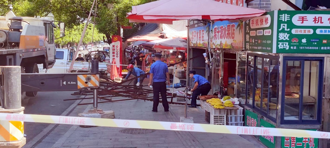 拆除期间,工作人员严格按照拆除方案,对拆除现场设置了警戒线,并安排执法队员对周边环境进行维护,全面做好现场警戒封闭、突发事件应急处理等保障工作。在确保施工区域安全的前提下,工作人员利用专业机械设备对户外广告设施进行逐步拆除,整个施工过程秩序井然有序。截至目前,已拆除下马路、飞虎路、320国道三里坪路段、舞水路等路段50余处大小型户外广告设施,面积约3千平方米。