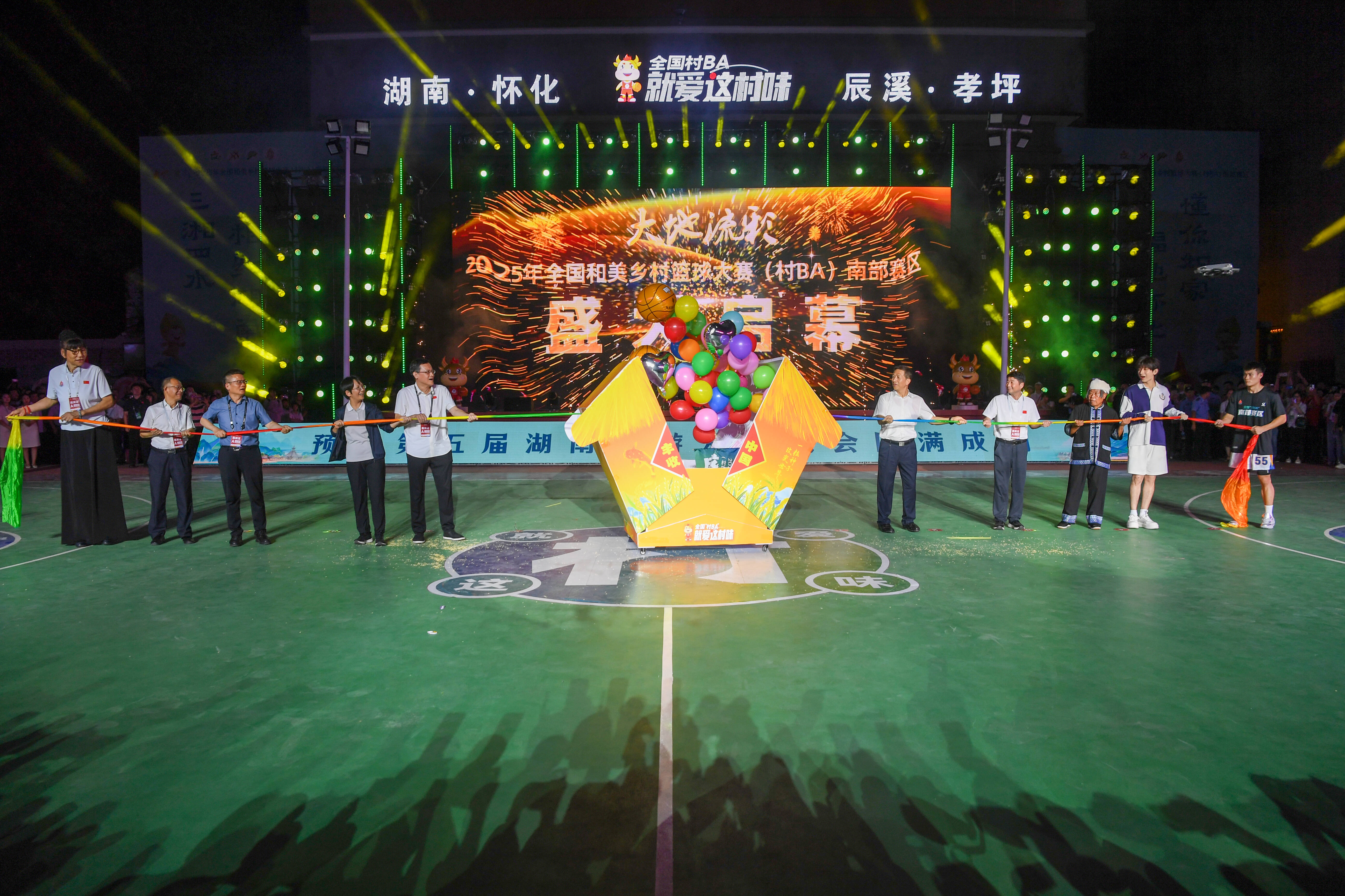 怀化日报全媒体讯 8月20日晚,大地流彩·2025年全国和美乡村篮球大赛(村BA)南部赛区在辰溪县孝坪镇开赛。国家发改委原副秘书长、中央国家机关篮协副主席周晓飞,农业农村部农村社会事业促进司一级巡视员尹虓,中央农广校党委副书记、常务副校长、中国农民体育协会副秘书长宋聚国,前中国女篮著名中锋、国际篮联名人堂、中国篮球名人堂成员郑海霞,前中国女篮主力中锋、5届WCBA冠军获得者张晓妮,市委书记许忠建,省农业农村厅一级巡视员兰定国,省体育局二级巡视员罗立新,辰溪籍青年演员成毅出席开幕式。