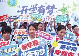 8月31日,嘉禾县珠泉完小,学生手举标牌跨入校门。当天,当地各中小学、幼儿园迎来秋季开学,学生们有序入校报到,迎接新学期的到来。黄春涛 摄(湖南图片库)