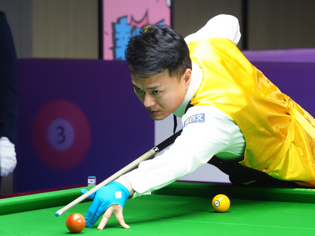 “天王”代勇与宁旭飞的对决中,二人显势均力敌之态,互不相让。整场比赛双方比分轮流领先,直到接近尾声时,代勇12:10抢先到达赛点,随后衔接一杆炸清以13:10的比分战胜宁旭飞。