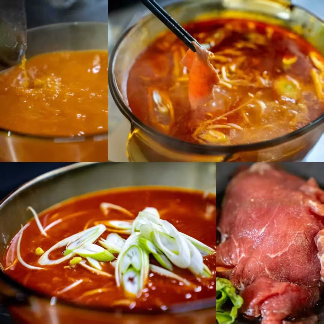 怀化食界不只有鸡鸭鹅。新晃黄牛肉纹理如墨,雪峰山乌骨鸡炖天麻汤鲜照影,通道侗家腌肉埋杉木桶发酵半年,蒸则满村飘香。新晃云锦食府李俊师傅擅做酸汤牛肉:“好牛肉黏手,下锅不碎,一口奶香!”牛四两切薄片,西红柿混秘制山胡椒油熬酸汤,涮三秒即熟。裹上锅巴粉,酸辣鲜灵在舌尖炸开,这酸汤,比贵州的还过瘾。