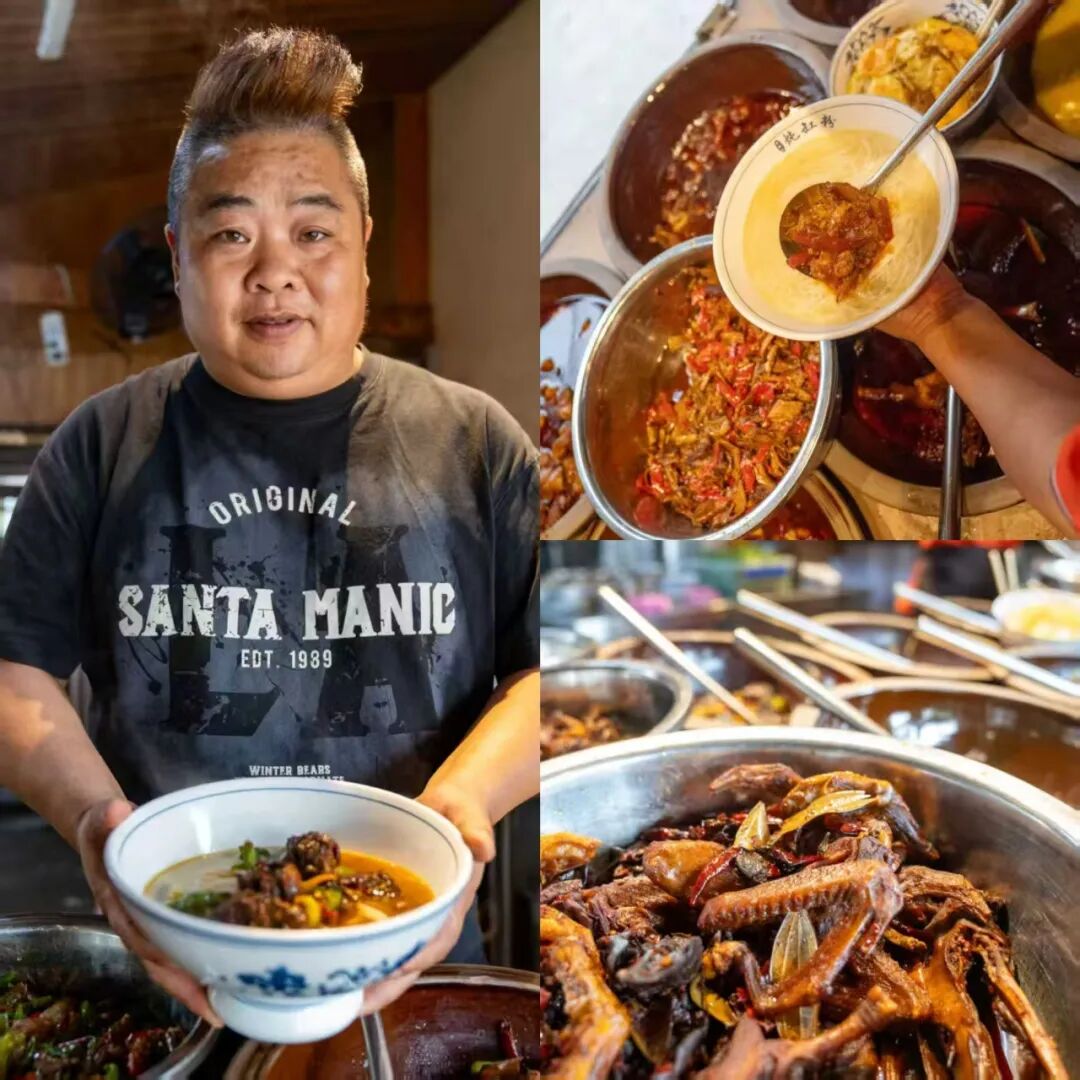 城东的炖缸粉馆藏着老怀化的记忆。灶台上码着十多个粗陶瓦缸,炒鸭、牛腩、脆哨在炭火上咕嘟冒泡,油花溅在缸壁上,烤出焦香。老板杨世东守着这个摊子八年,每天凌晨四点起床熬汤,他的炖缸粉由酒席演变而来。
