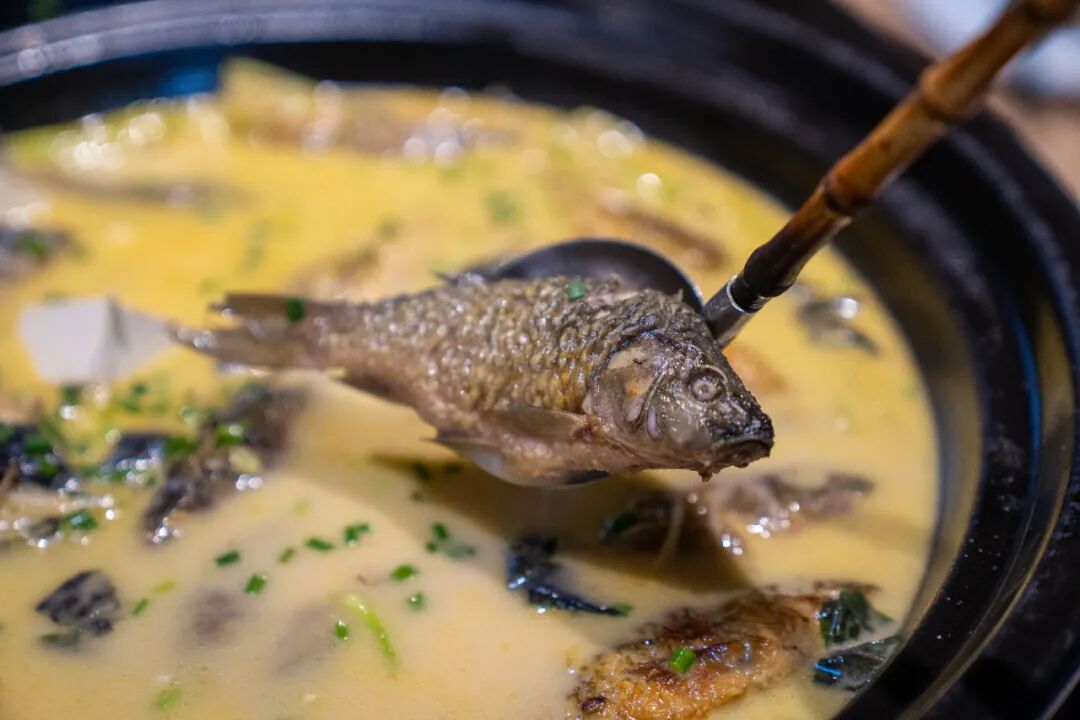 怀化稻田院集结怀化地道风味,这是黄焖辰溪稻花鱼。图/钱烨