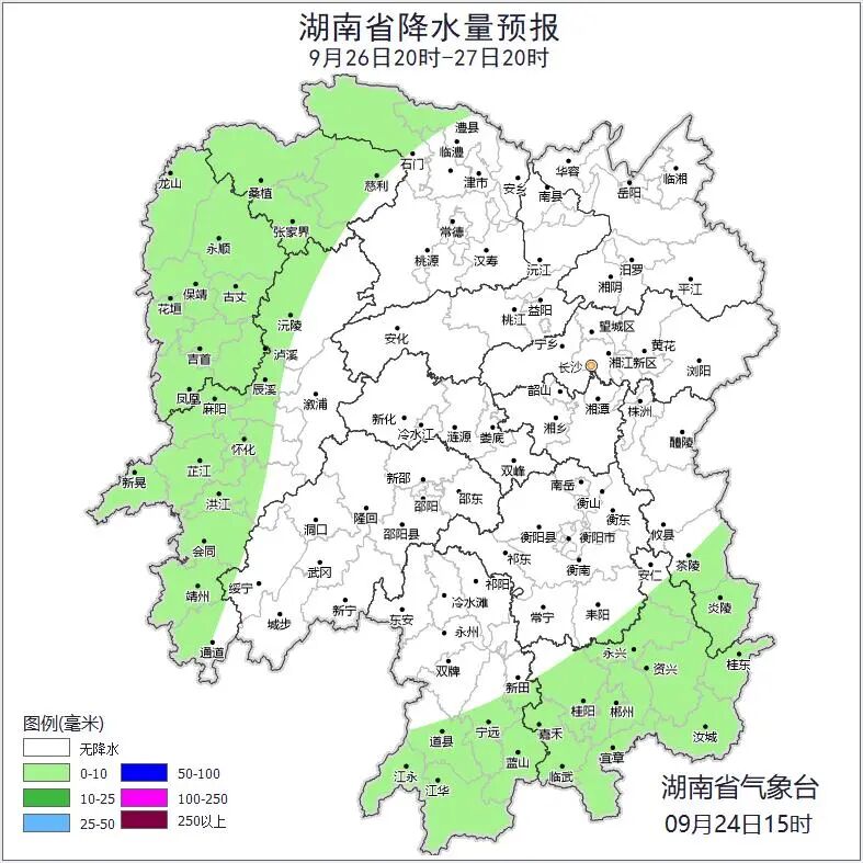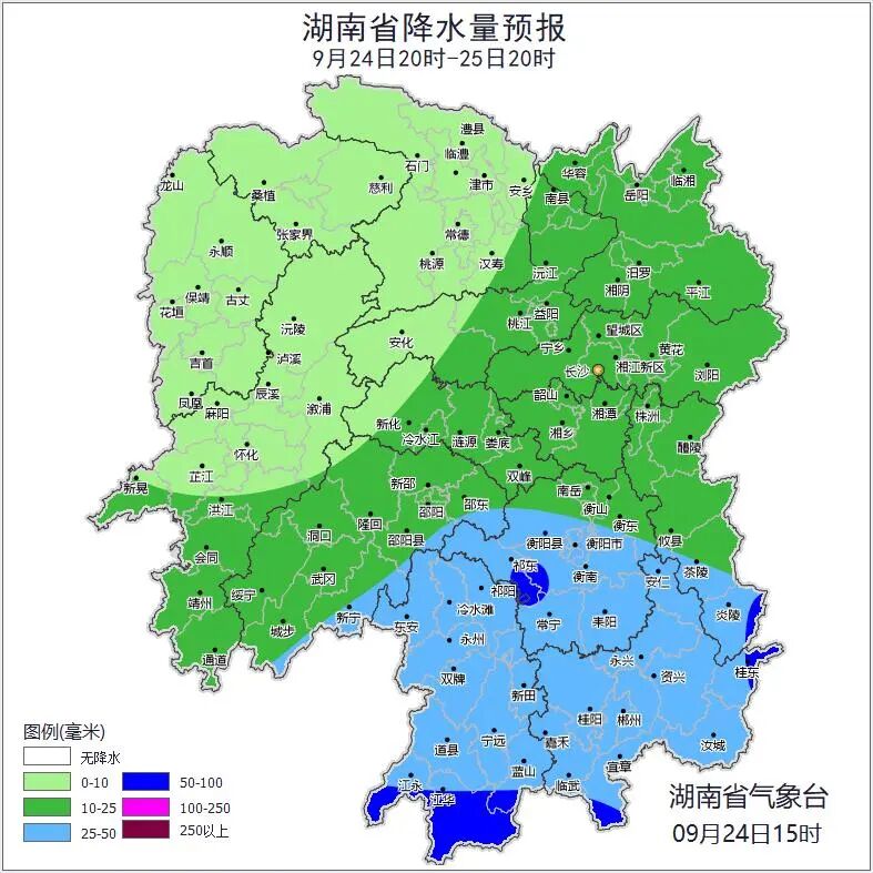 提 醒 1.防范今明两天湘南局地较强降雨、大风可能诱发的山洪、地质灾害等次生灾害风险,加强水陆交通、城市运行安全管理。 2.目前湘北部分地区出现轻度寒露风,建议加强田间管理,防范寒露风对农作物的不利影响。