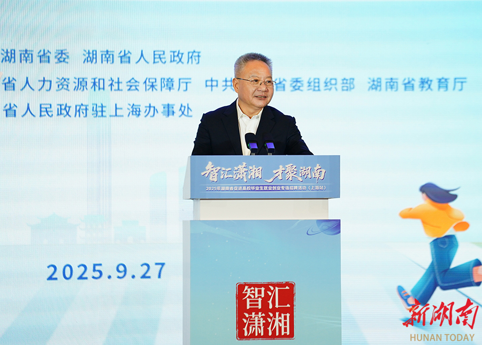 湖南日报上海9月27日电(全媒体记者 刘燕娟)27日,“智汇潇湘 才聚湖南”上海站专场推介大会暨省校合作签约仪式在上海展览中心举行。省委书记沈晓明出席并致辞,向大学生朋友发出邀请,欢迎大家走进湖南、了解湖南,到湖南来工作、来创业、来安家。