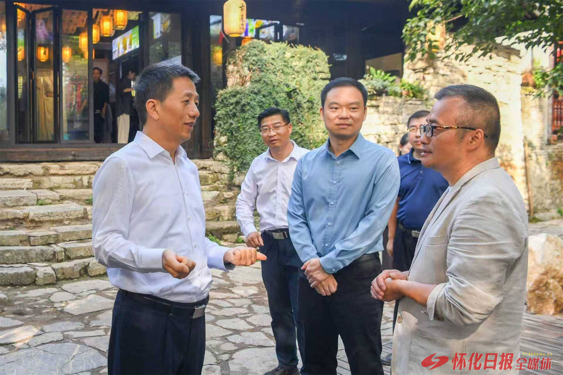 (9月28日上午,市委书记许忠建专题调研国庆、中秋假期旅游市场服务保障准备工作。图为许忠建在荆坪古村与经营业主交流,听取意见建议。怀化日报全媒体记者 杨智伟 摄)