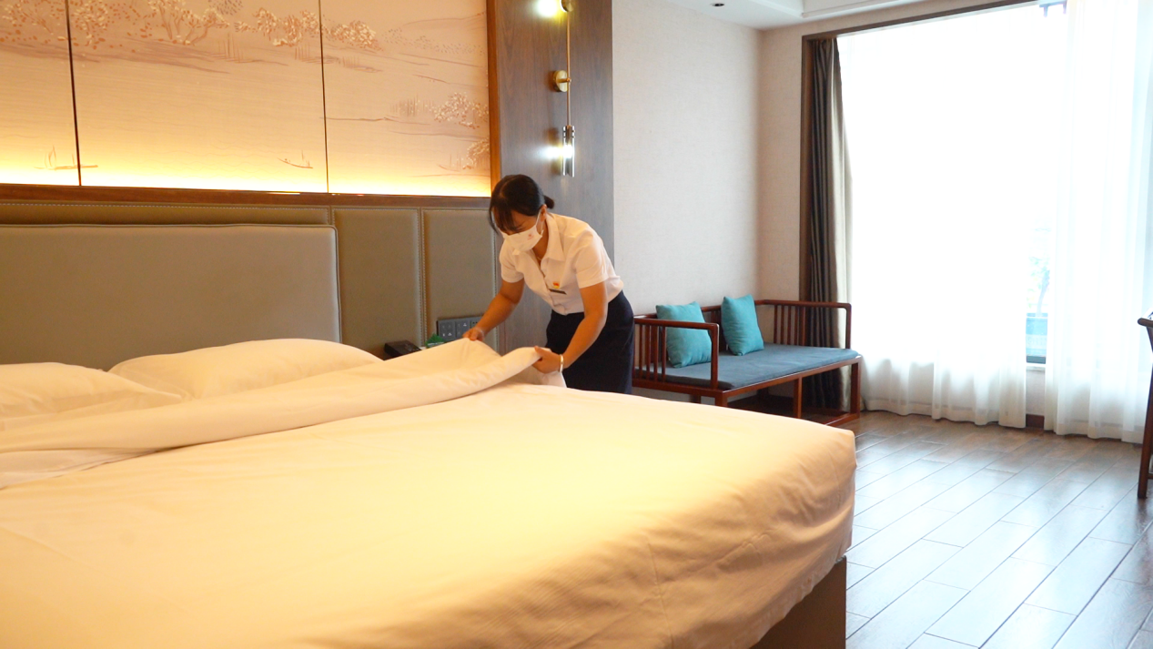 为提升游客体验,全县酒店积极优化服务品质,严格落实“一客一换一消毒”卫生制度,餐饮质量严格对标食品监督管理部门要求,全力保障游客“住得舒心、吃得放心”。