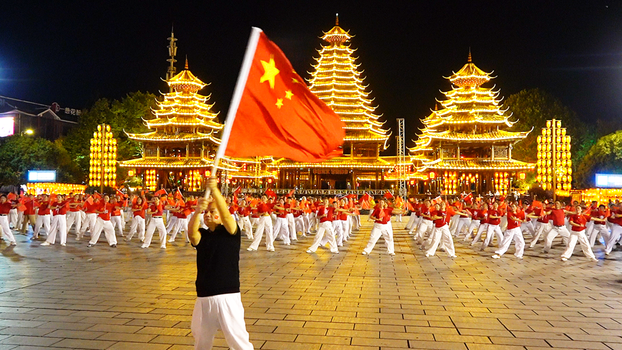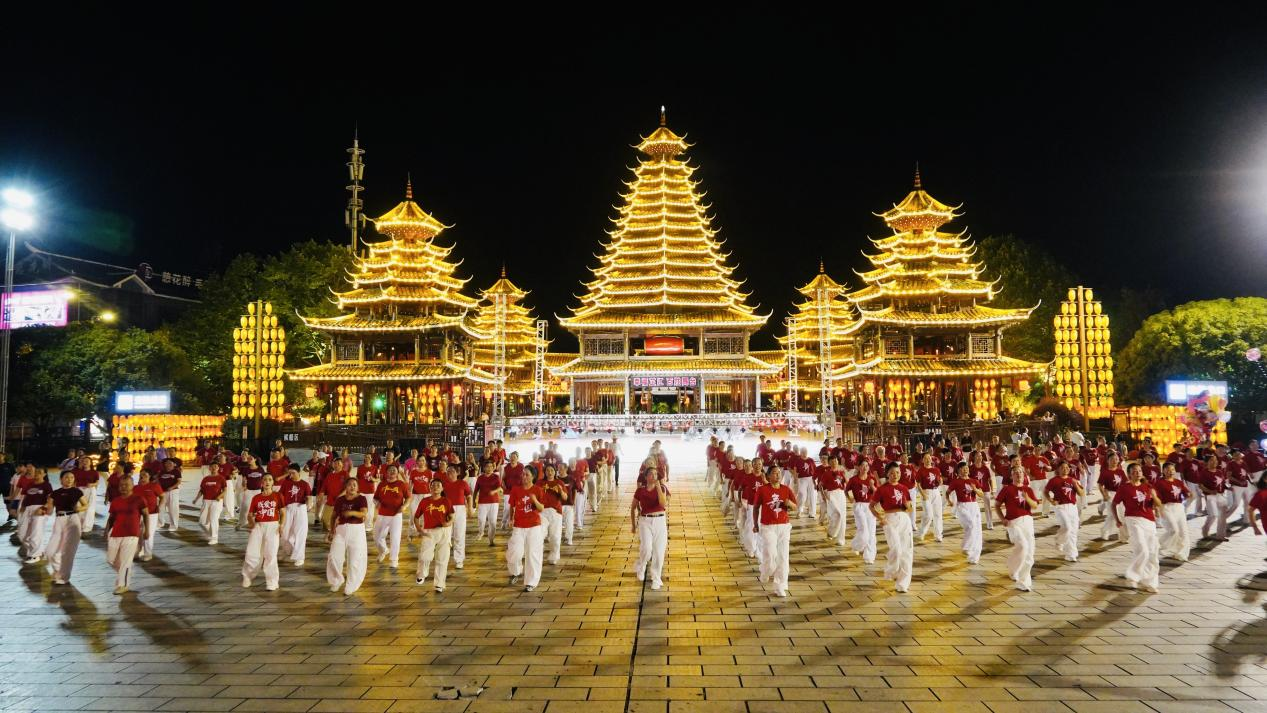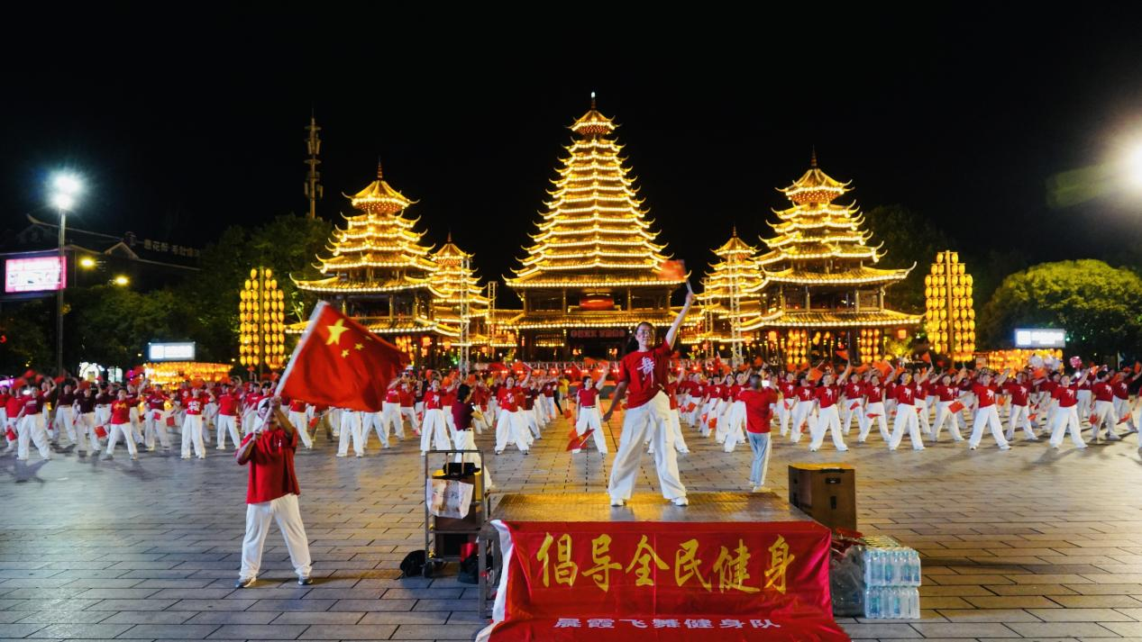 鼓楼广场夜添彩 芷江群众自发起舞迎国庆