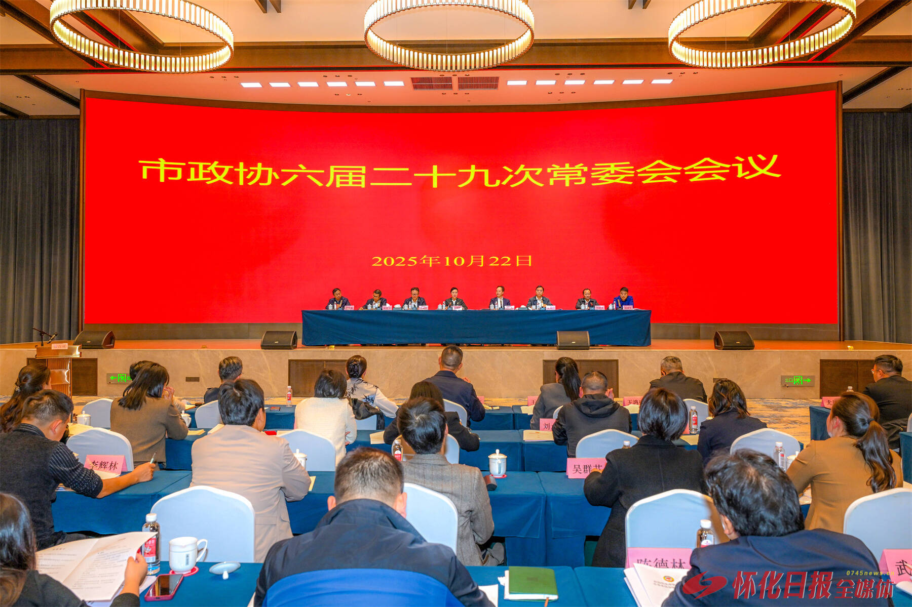 怀化日报全媒体讯 10月22日下午,市政协六届二十九次常委会会议召开。市委副书记、市政府党组书记韦朝晖出席并讲话。市政协主席牛顺生主持。市政协领导王海涛、李如清、张有平、刘晓明、娄宏福,秘书长胡诗军出席。