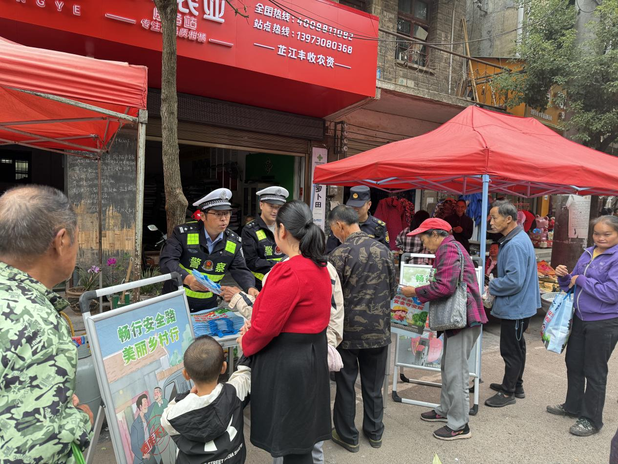 活动期间,恰逢乡镇赶集日。民警在人员密集区域摆放宣传展板、发放宣传资料,聚焦农村地区面包车超员、三轮车违法载人、驾乘车辆不系安全带、骑乘摩电不戴安全头盔、60周岁以上老年人无证驾驶等突出违法行为,面对面为群众剖析危害,并告知大家,这些行为不仅涉嫌违法,更直接威胁自身与他人的生命财产安全,同时倡议大家自觉遵守交通法规,做到安全文明出行,共同守护美丽乡村的平安路。