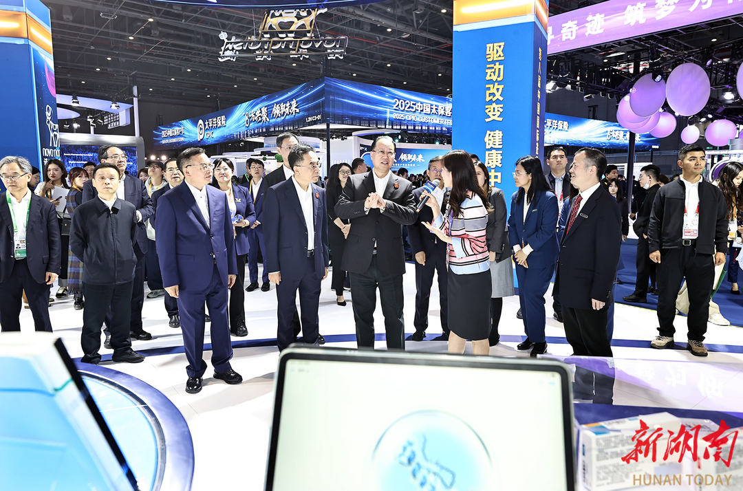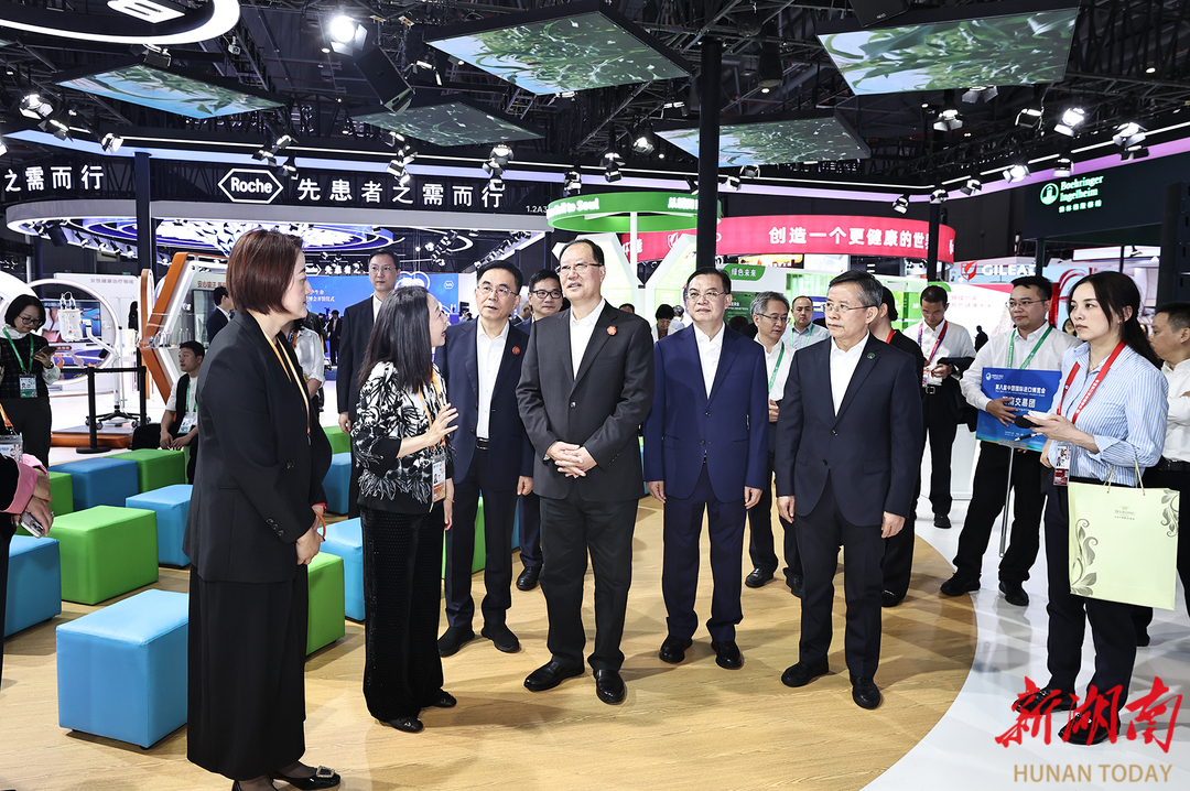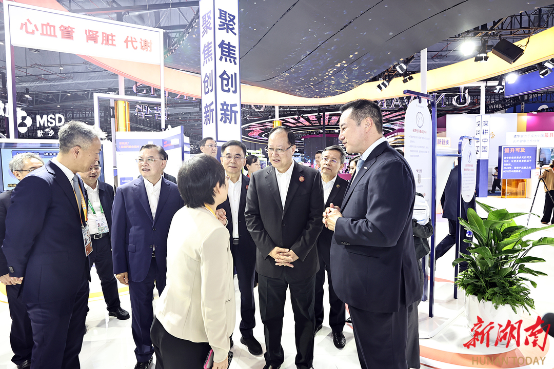在医疗器械及医药保健展区,毛伟明一行先后参观了飞利浦、诺和诺德、诺华、拜耳等企业展台,了解新技术、新产品、新服务,现场推介湖南投资机遇。他说,生物医药与医疗器械产业是湖南13条重点推进产业链之一。诚邀大家来湘共促技术变革、共拓产业空间,与湖南高质量发展同频共振、在未来赛道携手奔跑。