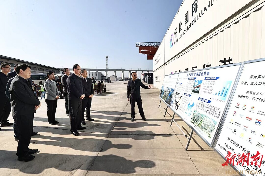 随后,毛伟明一行来到怀化国际陆港公司,了解企业最新发展情况,并与大家座谈。他说,自2021年9月启动建设以来,怀化国际陆港步入发展快车道,预计今年提前一年完成班列开行达1000列以上、货物吞吐量达1000万吨以上、总产值达1000亿元以上的“三个一千”目标。“十五五”期间,怀化市和有关部门要按照“量质并举、以质取胜,提升功能、提高效能,做高平台、做强产业,政府引导、市场主导”的要求,用好用足政策优势、区位优势、开放优势,持续在加强货物集结、优化货运结构、降低物流成本上下功夫,着力打造一批特色鲜明的支柱企业、主导产业,加快以港兴产、以产促港、港产城一体化融合发展,奋力建设一流国际陆港。