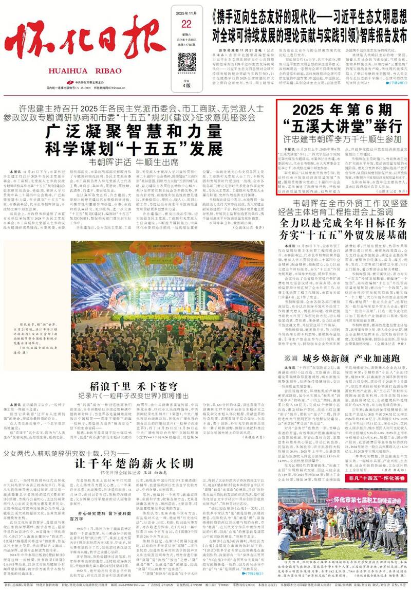 (11月21日上午,2025年第6期“五溪大讲堂”举行。怀化日报全媒体记者 杨智伟 摄)