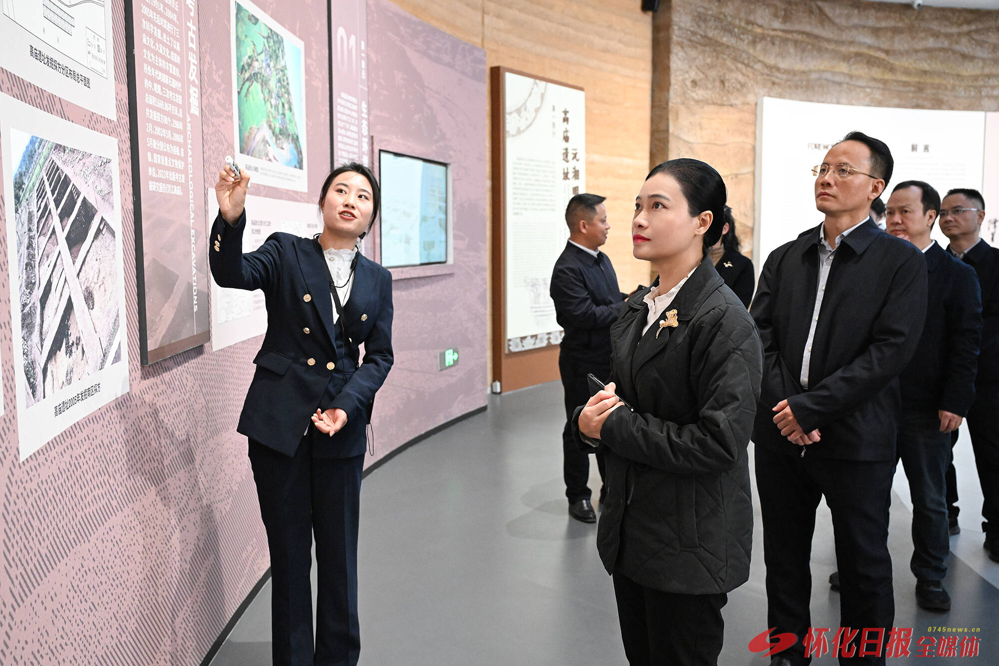 (11月24日,市委副书记、代市长韦朝晖在洪江市调研。图为韦朝晖在高庙遗址博物馆了解景区提质改造、文物活化利用等情况。怀化日报全媒体记者 吴涛 摄)