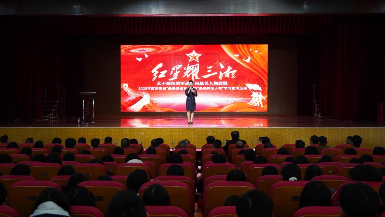 宣讲会上,“最美退役军人”代表申旺与黎良武用亲身经历诠释了“退役不褪色、退伍不退志”的忠诚与坚守。邵东市关爱老兵志愿者协会会长申旺,曾是一名侦察兵,退役后毅然踏上公益之路,十年如一日深耕关爱老兵事业。他以坚毅与创新为笔,守护老兵尊严、传承红色记忆,在平凡岗位上走出了一段意义非凡的“职业长征”;湖南劳动人事职业学院纪委副书记黎良武,则结合自身成长经历,分享了对责任、尊严与爱的深刻感悟,传递着“用爱温暖世界”的人生信念。