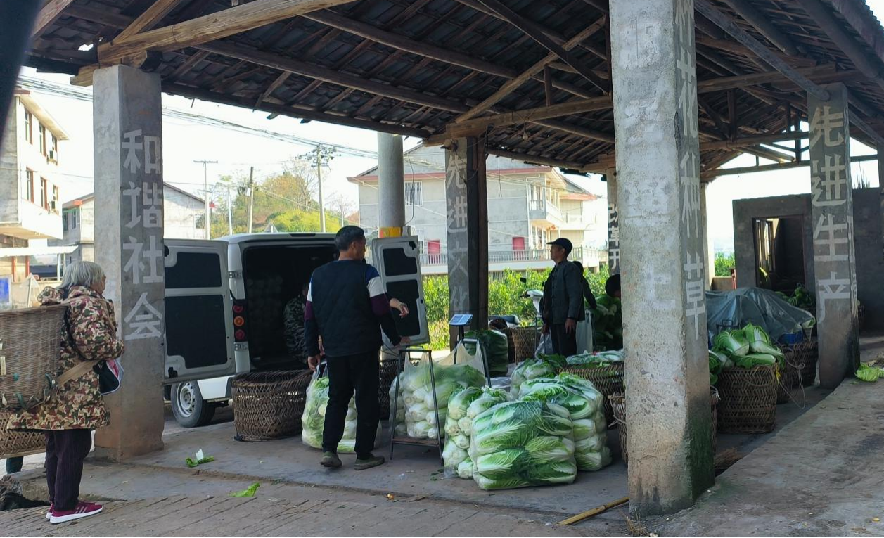 据了解,作为当地主要蔬菜种植村之一,荷叶塘村蔬菜品种丰富,包括白菜、青菜、辣椒、茄子等,其中,白菜年销量可达100万余斤、青菜年销量30万斤,且因规模大、品质稳的优势,成为佳惠超市等大型超市及湘黔两省多地批发商的供货源,直接带动了当地村民增收。