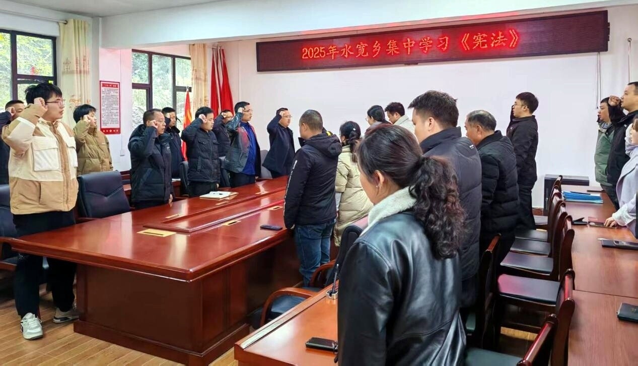 (水宽司法所与乡政府一起,集中学习了《中华人民共和国宪法》,并重温宪法宣誓誓词)