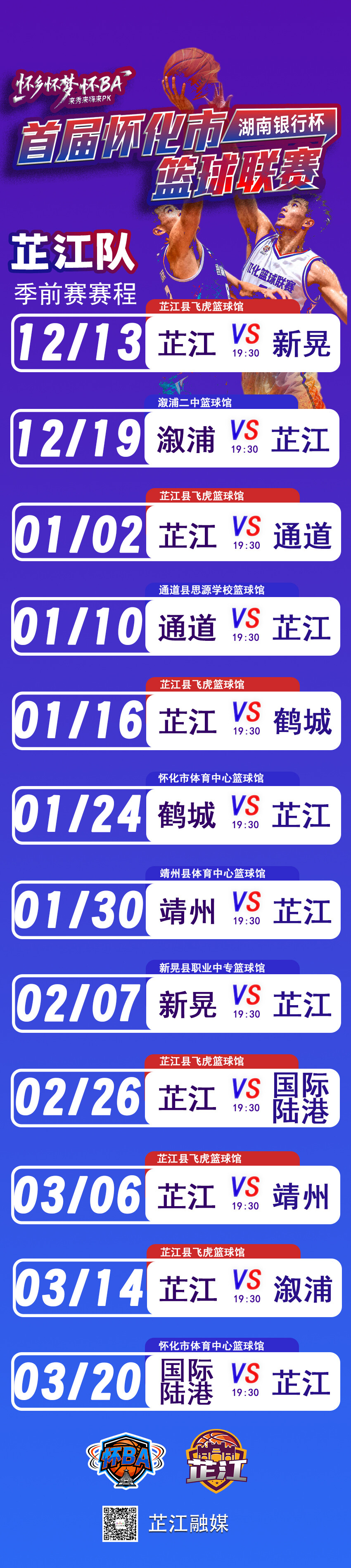 海报|首届怀化市“湖南银行杯”篮球联赛芷江队季前赛赛程