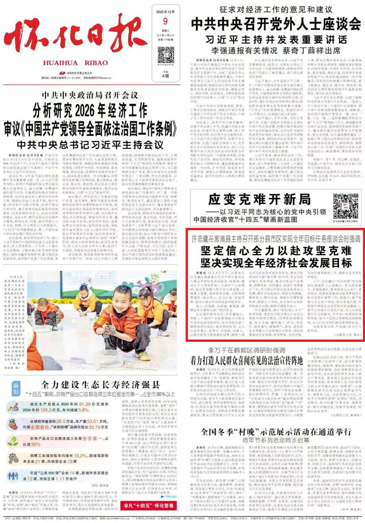 怀化日报全媒体讯 12月8日下午,市委书记许忠建在溆浦县主持召开部分县市区实现全年目标任务座谈会。他强调,要深入学习贯彻党的二十届四中全会精神,坚决贯彻落实党中央决策部署,认真落实省委、省政府和市委、市政府部署要求,坚定信心、全力以赴、攻坚克难,坚决实现全年经济社会发展目标。