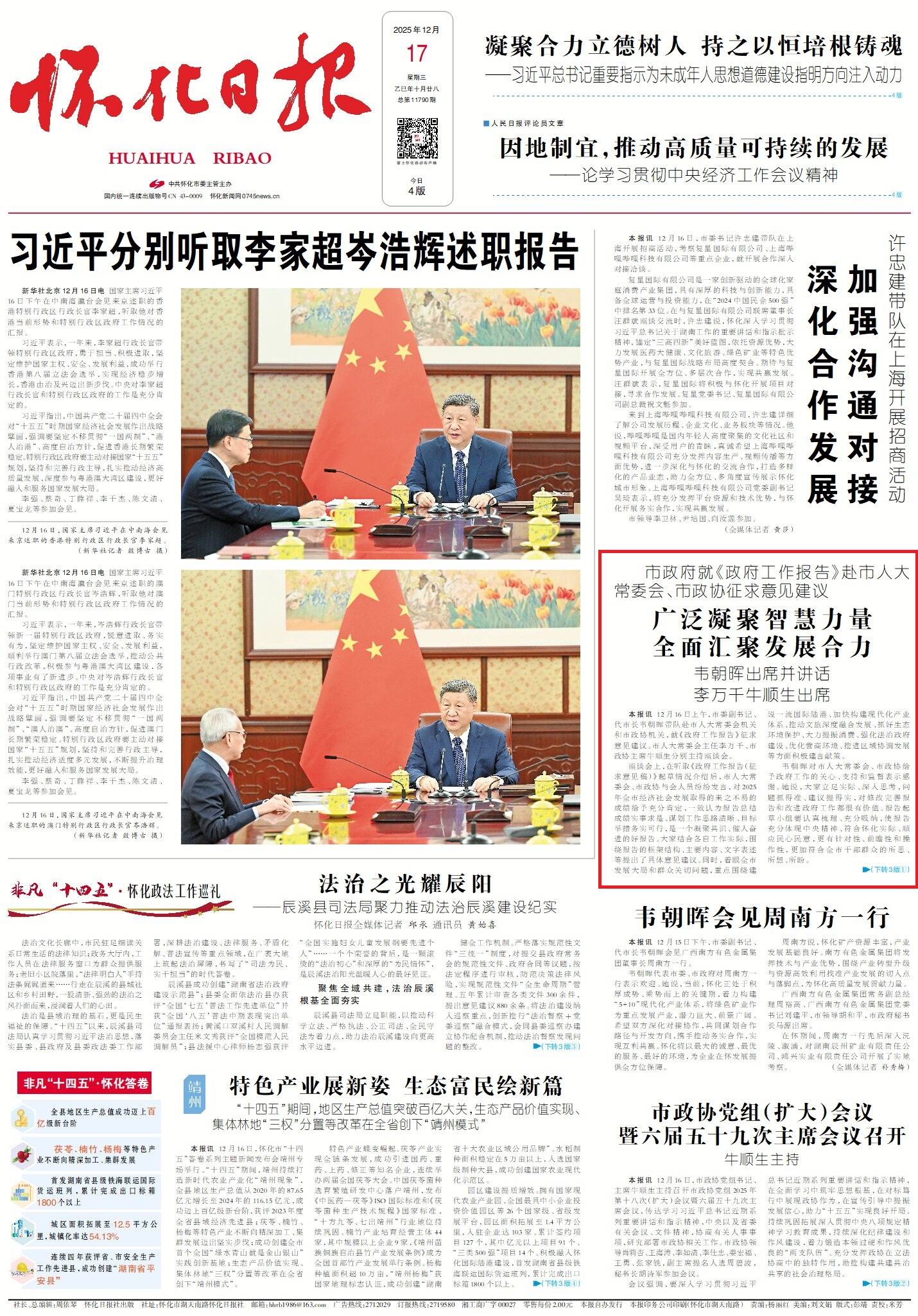 怀化日报全媒体讯 12月16日上午,市委副书记、代市长韦朝晖带队赴市人大常委会机关和市政协机关,就《政府工作报告》征求意见建议。市人大常委会主任李万千、市政协主席牛顺生分别主持座谈会。