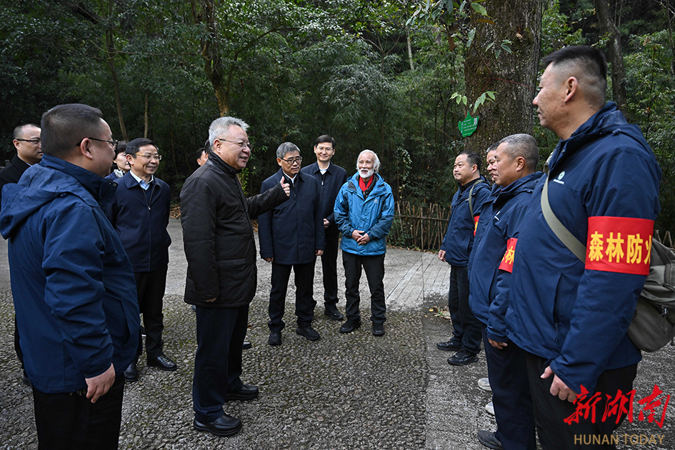 莽山国家森林公园总面积1.98万公顷,森林覆盖率达90%,是全省面积最大的国家森林公园,物种资源丰富。沈晓明先后来到莽山国家森林公园枞树坝保护站、天台山原始次生林保护区,察看莽山动植物科普中心,并开展实地巡林,与林业专家、护林员深入交流,了解莽山生态环境保护、文旅产业发展、森林资源保护利用等情况。沈晓明还走进莽山消防救援站,察看物资配备和日常训练,了解森林防灭火、景区应急救援处置等情况。