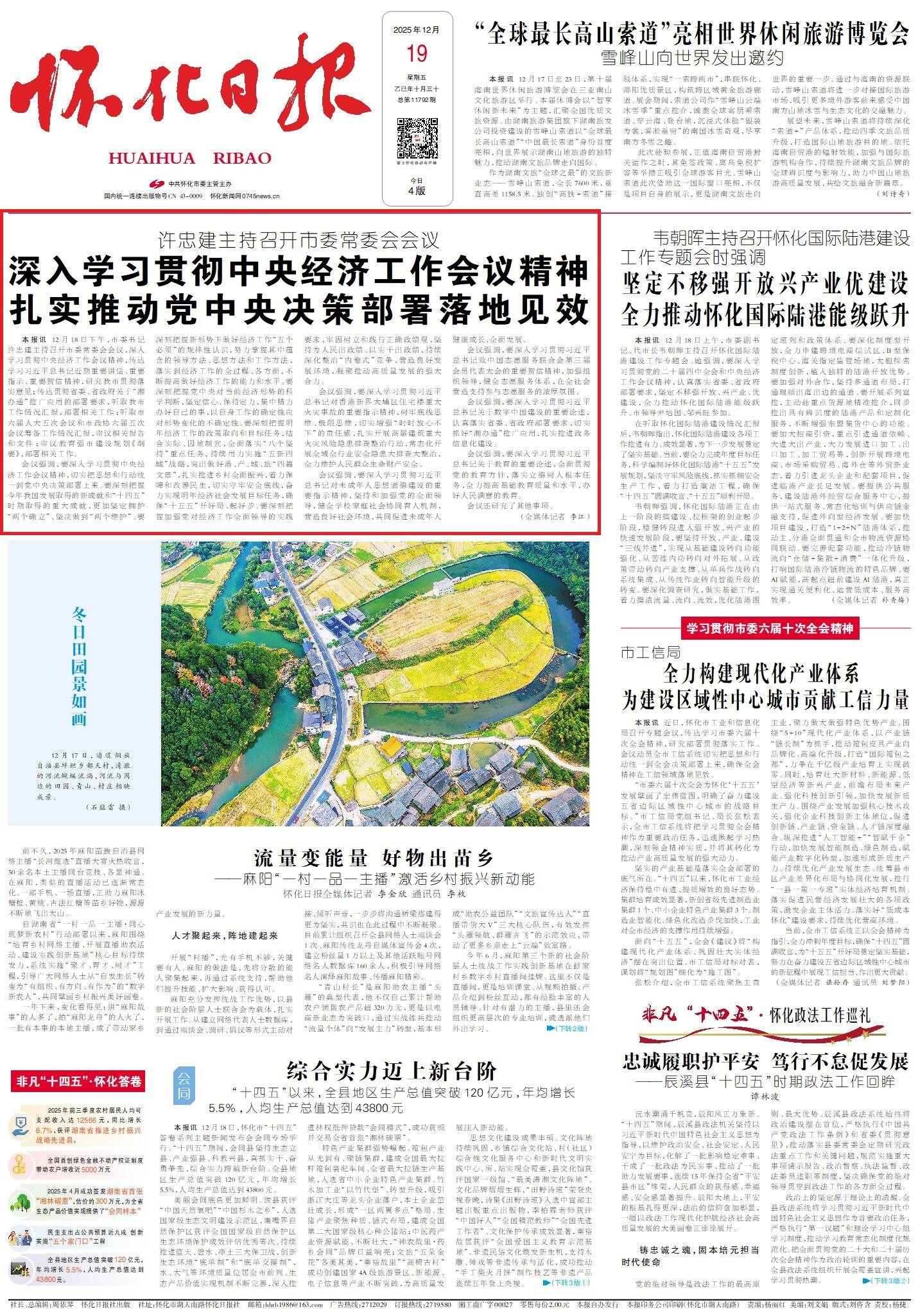 怀化日报全媒体讯 12月18日下午,市委书记许忠建主持召开市委常委会会议,认真学习贯彻中央经济工作会议精神,传达学习习近平总书记近期重要讲话、重要指示、重要贺信精神,研究我市贯彻落实意见;传达贯彻省委、省政府关于“湘办通”推广应用的部署要求,听取我市工作情况汇报,部署相关工作;听取市六届人大五次会议和市政协六届五次会议筹备工作情况汇报,审议相关报告和文件;审议教育强市建设规划《纲要》,部署相关工作。