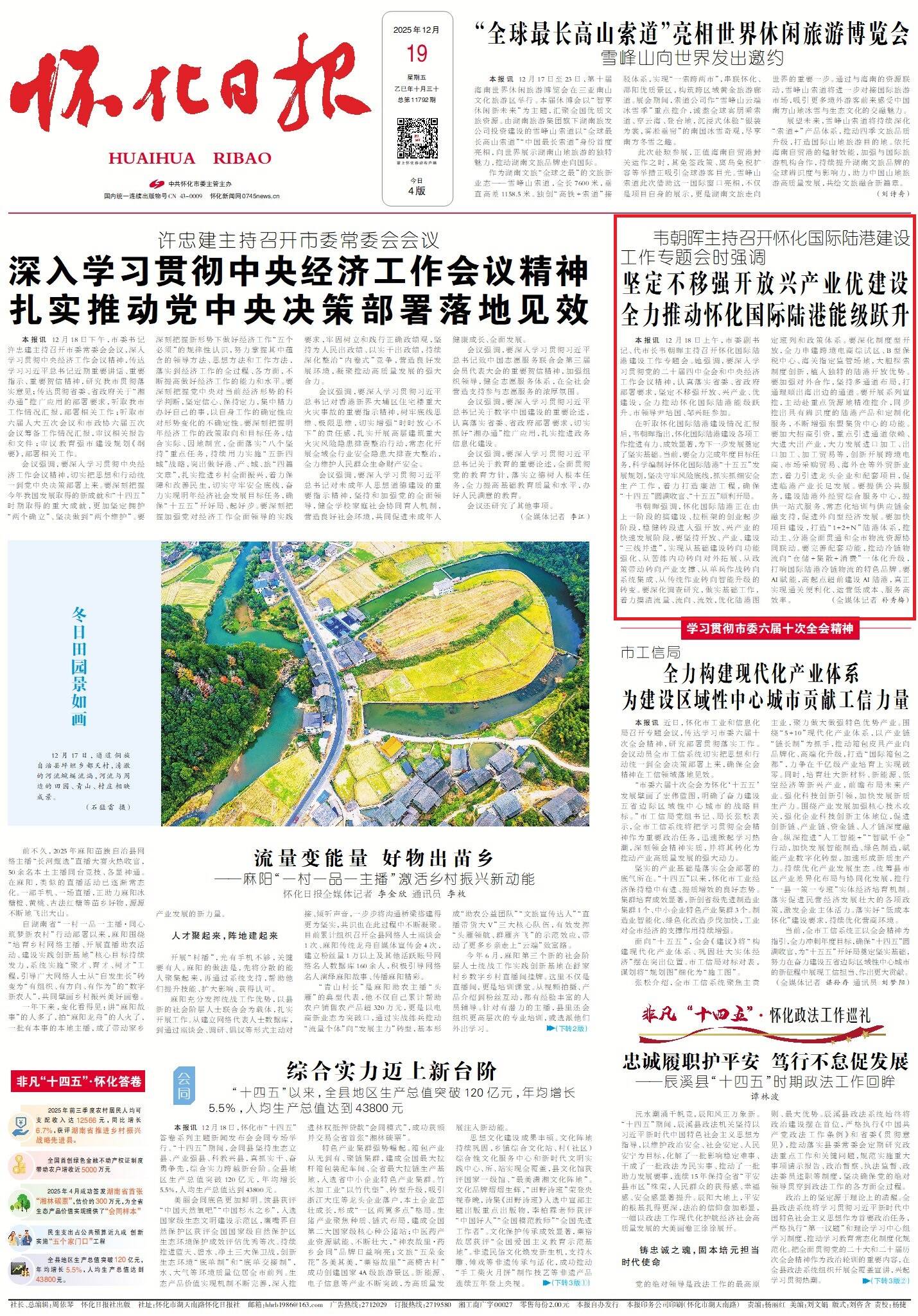 怀化日报全媒体讯 12月18日上午,市委副书记、代市长韦朝晖主持召开怀化国际陆港建设工作专题会。她强调,要深入学习贯彻党的二十届四中全会和中央经济工作会议精神,认真落实省委、省政府部署要求,坚定不移强开放、兴产业、优建设,全力推动怀化国际陆港能级跃升。市领导尹培国、邹兴旺参加。
