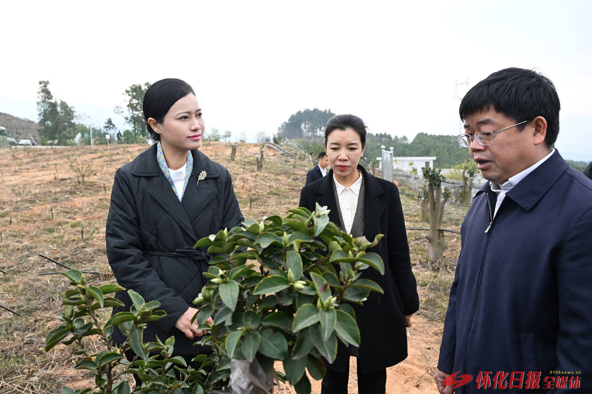 中方县“德油”油茶新品种基地的油茶由中南林业科技大学袁德义科研团队培育,具有果大皮薄、油脂优异、产油量高等特点。韦朝晖详细了解油茶新品种繁育情况,鼓励基地发挥示范带动作用,大力推行“良种良法”,打造油茶种苗、高产林示范基地,积极对接市场需求,开发油茶产业链下游产品,跑出生态产品价值实现“加速度”。泸阳镇聂家村油茶种植基地内,郁郁葱葱的油茶树长势喜人。详细了解低产林改造、新造林经营等情况后,韦朝晖指出,要延伸油茶产业链条,推动农林文旅融合发展,完善联农带农利益联结机制,有效带动更多村民增收致富。